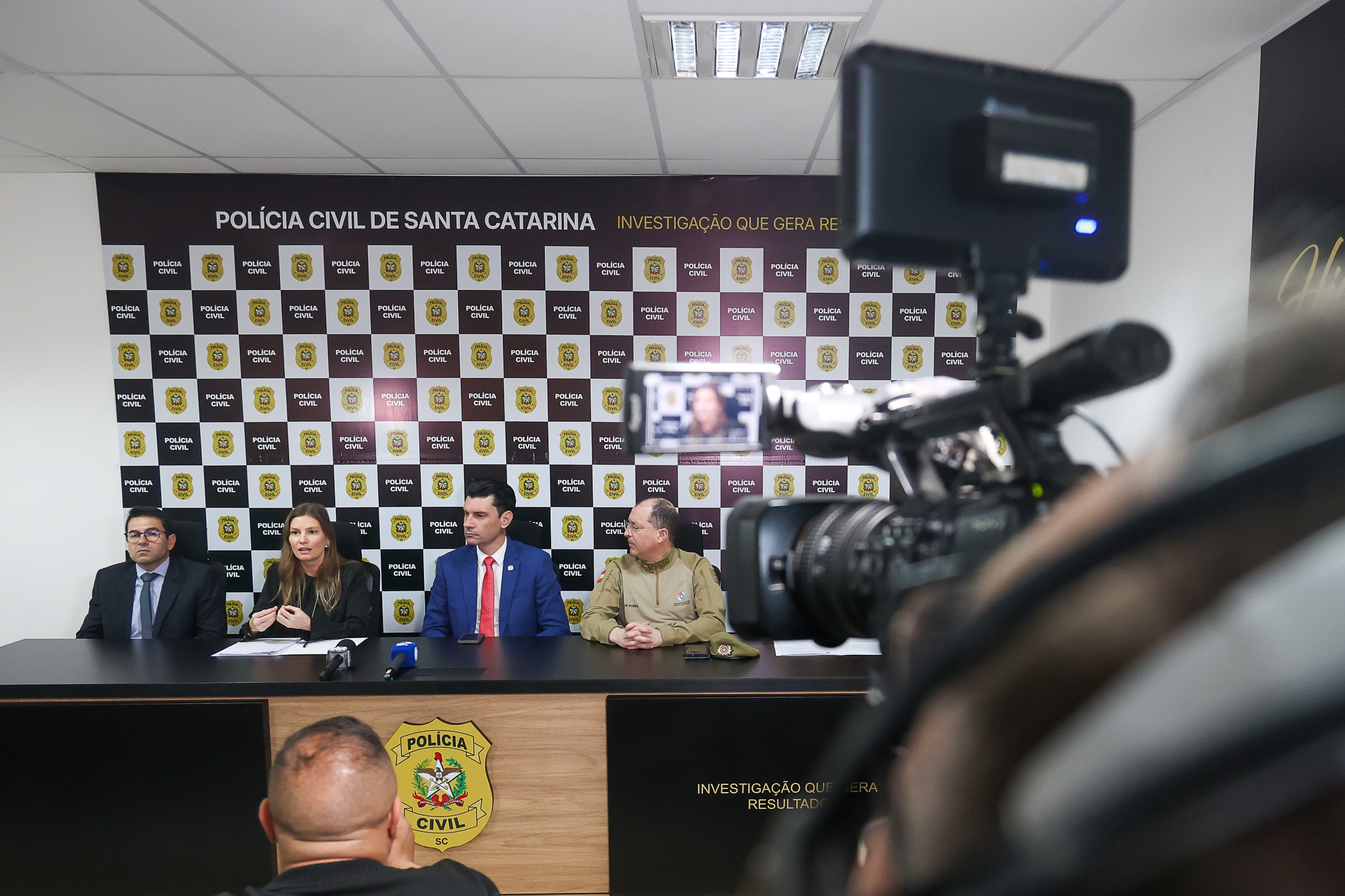 O resultado da investigação foi apresentado em coletiva de imprensa realizada na sede da Delegacia-Geral, em Florianópolis, que contou com a participação do Delegado-Geral da Polícia Civil, Ulisses Gabriel; da Perita-Geral da Polícia Científica (PCI), Andressa Boer Fronza; do Coronel Cleber Pires, representando a Polícia Militar de Santa Catarina; do delegado de Polícia responsável pelo caso, Felipe Simão Gomes, e do Diretor de Medicina Legal da PCI, doutor Fernando Oliva da Fonseca.