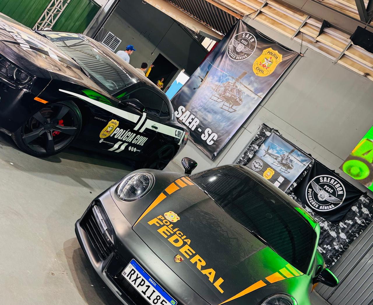 A Polícia Civil de Santa Catarina, por meio da 12ª Delegacia Regional de Chapecó, juntamente com o Centro Estadual de Apoio Operacional de Combate aos Crimes Contra o Agronegócio (CAOAGRO/PCSC), SAER-FRON (Serviço Aeropolicial de Fronteira) e Coordenadoria de Operações Policiais com Cães (COPC), exibem, na 22ª edição da Exposição Feira Agropecuária, Comercial e Industrial de Chapecó (EFAPI), um carro de luxo que foi apreendido pela Delegacia de Polícia de Içara, no ano de 2020, em operação policial denominada “Língua Solta”.