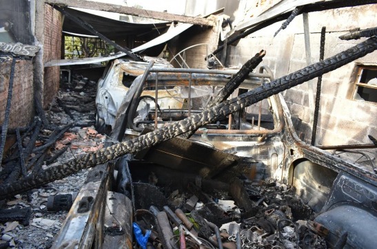 O Corpo de Bombeiros Militar foi acionado e realizou o rescaldo do sinistro, mas o incêndio já havia causado destruição significativa. As chamas destruíram completamente 02 veículos automotores, além de 03 roçadeiras, 01 carrinho de cortar grama, 01 fogão à lenha, 01 equipamento a gás para cozimento, móveis, eletrodomésticos, utensílios domésticos e diversos equipamentos de jardinagem. A estrutura da edificação sofreu colapso completo da cobertura da garagem e carbonização intensa das estruturas superiores.