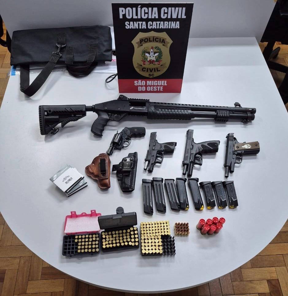 A Polícia Civil de Santa Catarina, por meio da Delegacia de Polícia da Comarca de São Miguel do Oeste, deflagrou, na manhã desta terça-feira (18/11), uma operação que resultou na apreensão de armas e munições na residência de um homem de 47 anos investigado pelo crime de ameaça. A ação contou com o apoio de policiais civis integrantes da Operação Protetor.
