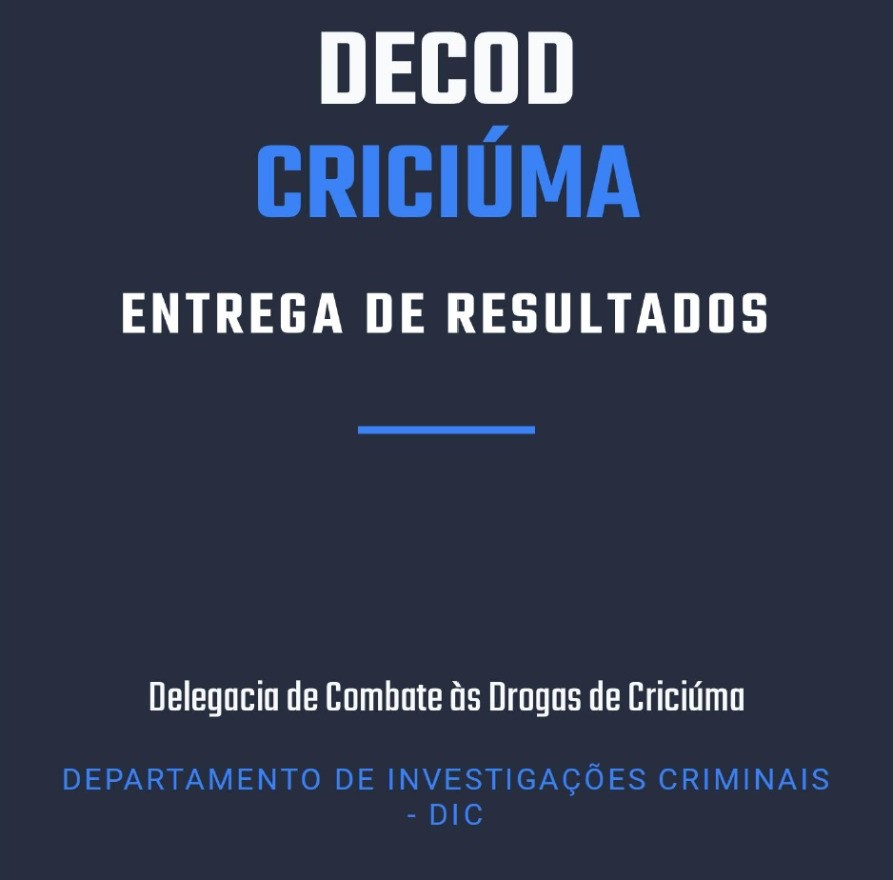 A Polícia Civil de Santa Catarina, por meio da DECOD Criciúma, reafirma seu compromisso com a cidade de Criciúma, com a legalidade e com a entrega de resultados concretos à sociedade.