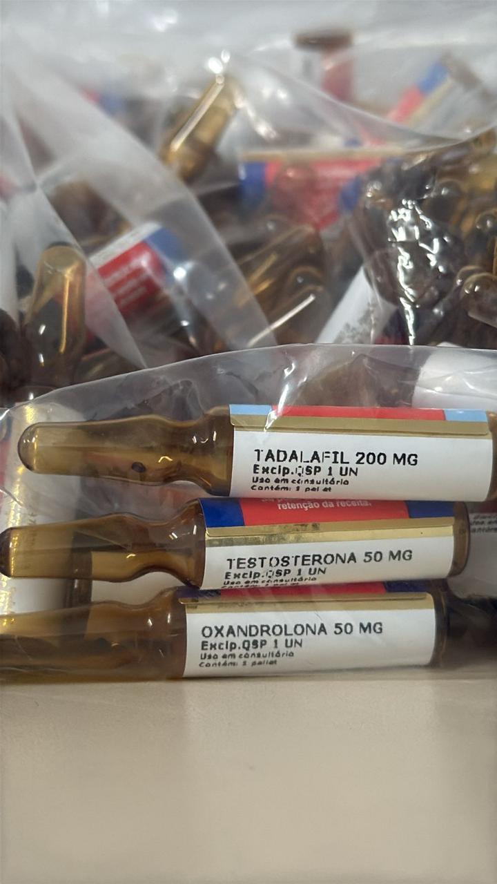 Durante as diligências, foram encontrados medicamentos injetáveis de alto valor, conhecidos como “chips da beleza”, além de outros produtos e hormônios de uso subcutâneo fabricados em desacordo com as normas sanitárias.