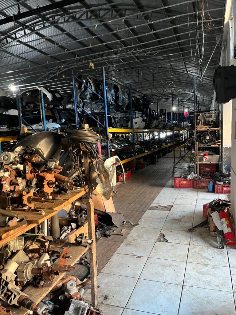 Durante a diligência, foram encontrados componentes pertencentes a 10 veículos distintos com procedência ilícita, sendo 3 com registro de furto/roubo e 7 com a numeração suprimida, prática utilizada para ocultar a origem criminosa das peças.